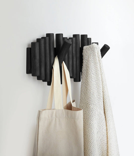 Picket Wall-Mounted Coat Rack Rail Hook: Black