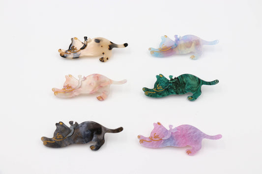 Stretching Cat Acetate Hair Clips Set of 2: Black