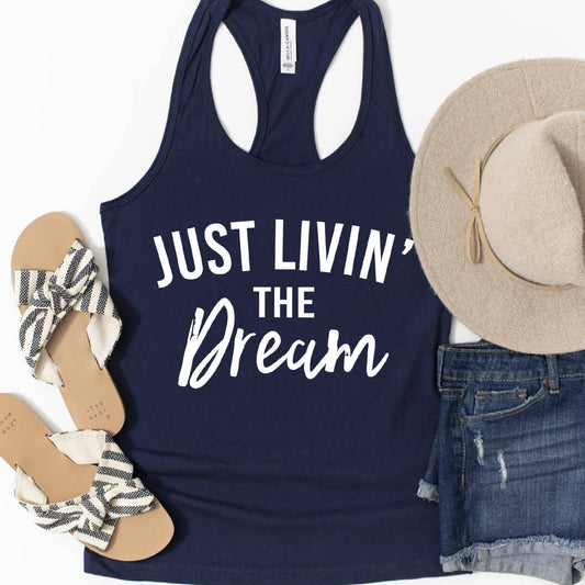 Summer Just Livin' the Dream Ocean Resort Shop Graphic Tank: Navy / Racerback