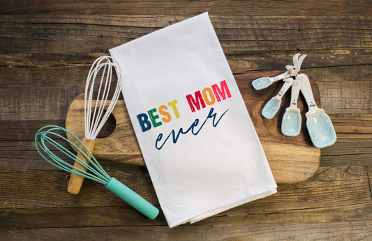 Best Mom Ever Kitchen Towel, Mother Dish Towel, Tea Towel: Transparent Cellophane Sleeve with Hanger Flap