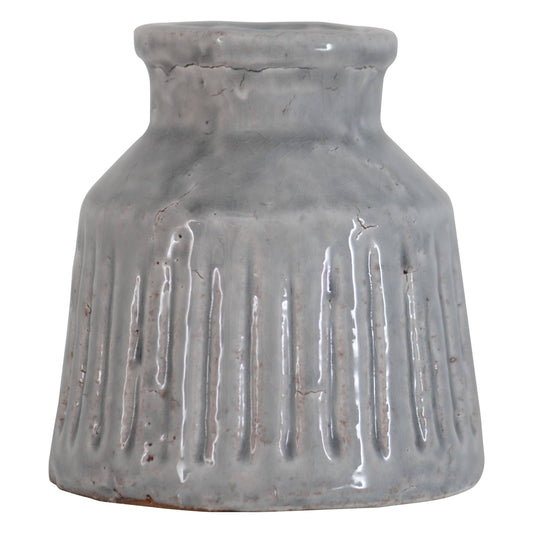 Bettina Handmade Gray Terracotta Vase with Carved Stripes