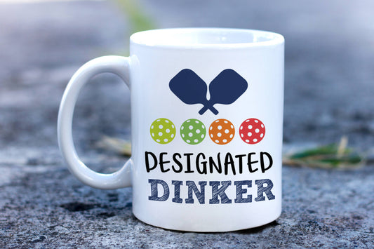 Blue Designated Dinker Pickleball Mug, Pun Coffee Cup: 15oz