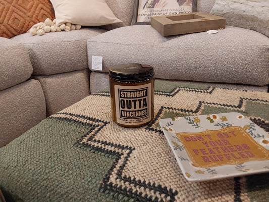 Custom Straight Outta Vincennes - Amber Screw Top Votive Candle: Mahogany Woods (Type)