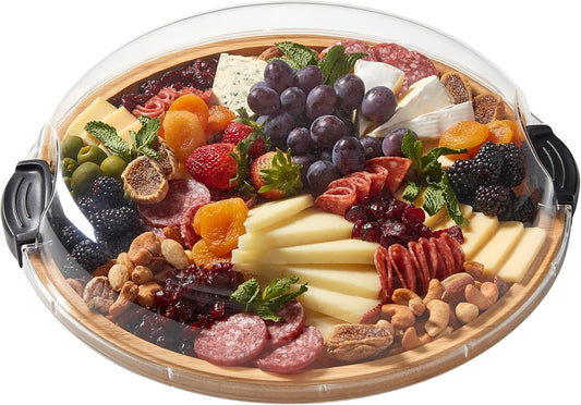 14-in Round Build-a-Board Bamboo Cutting Board with Five Compartments and Clear Locking Lid, Black Handles