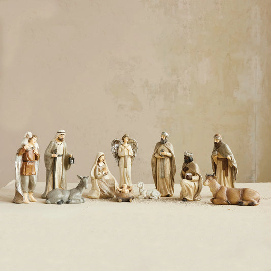 2"H - 8"H Resin Nativity with Glitter, Multi Color, Set of 11