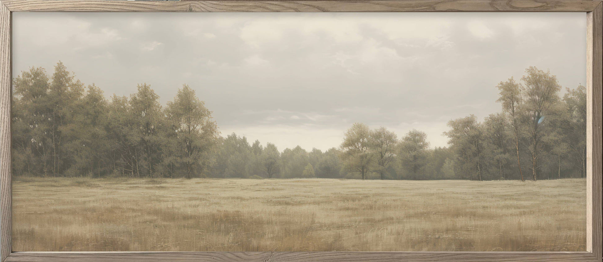 Treescape #2 printed on natural canvas and framed in our 24x60 Thin Oak Wood Frame. Printed on Raw Natural Canvas giving it a muted time worn feel!