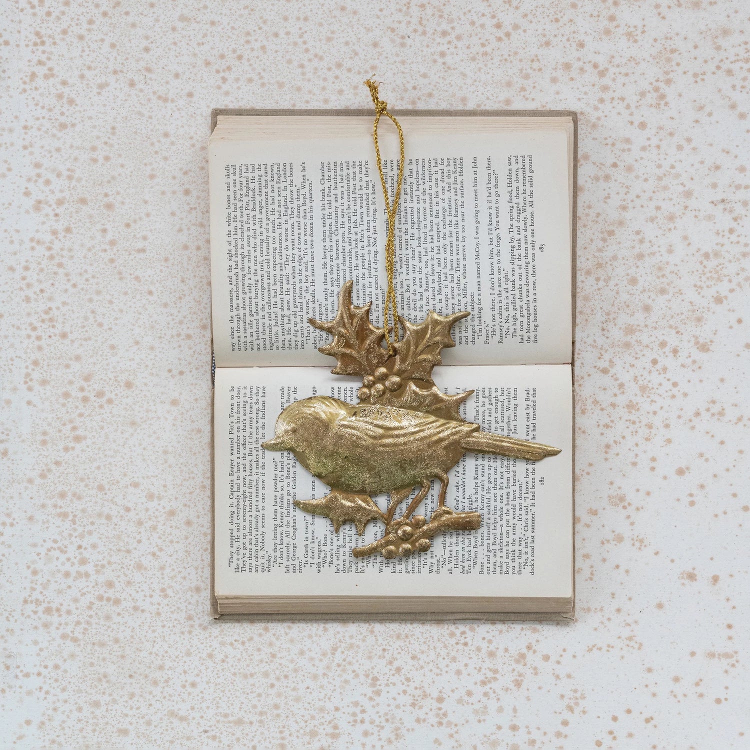 6-3/4"L Embossed Metal Bird with Holly Ornament, Gold Foil Finish