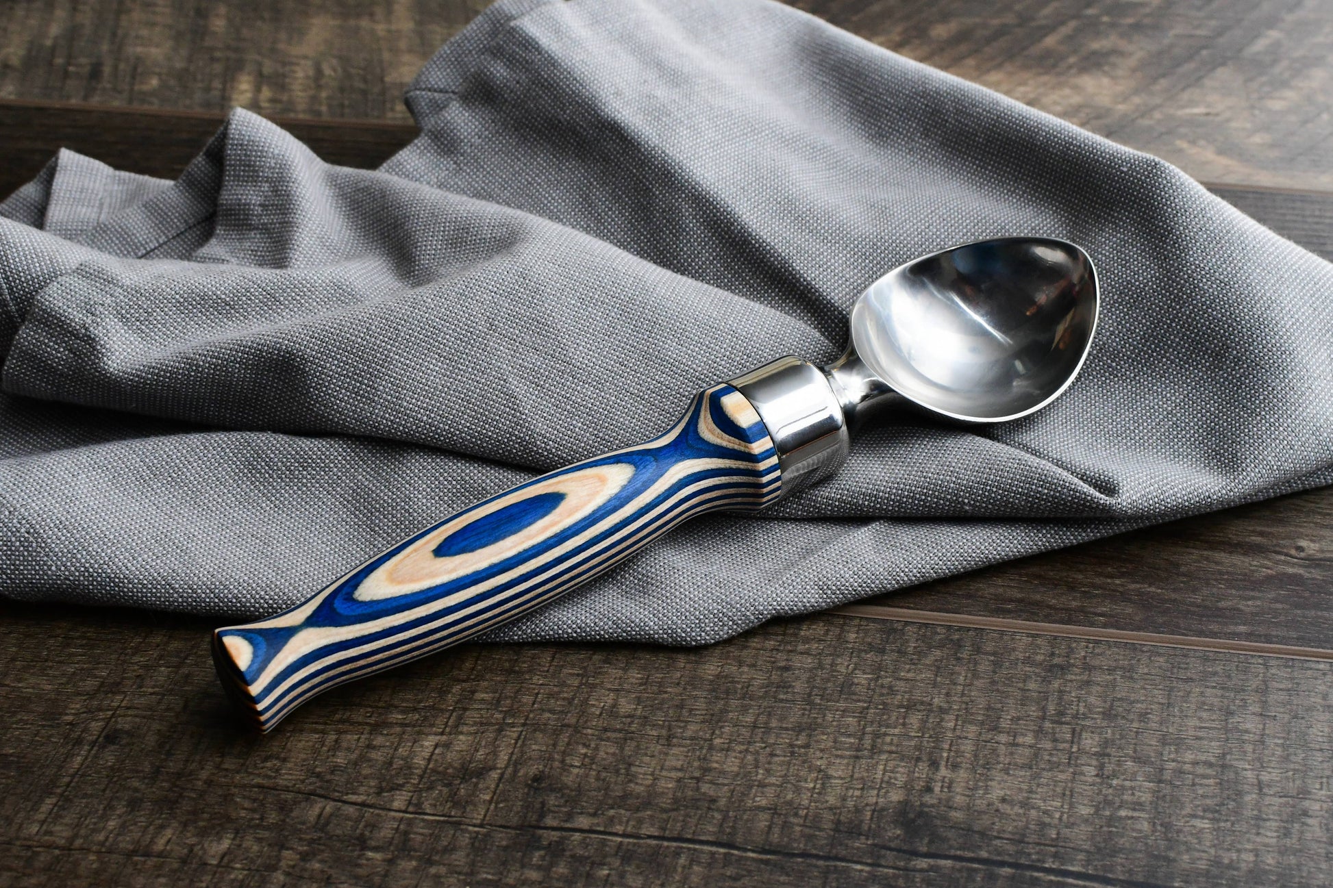 Layers of food safe, colored material make up these unique wood kitchen tools.