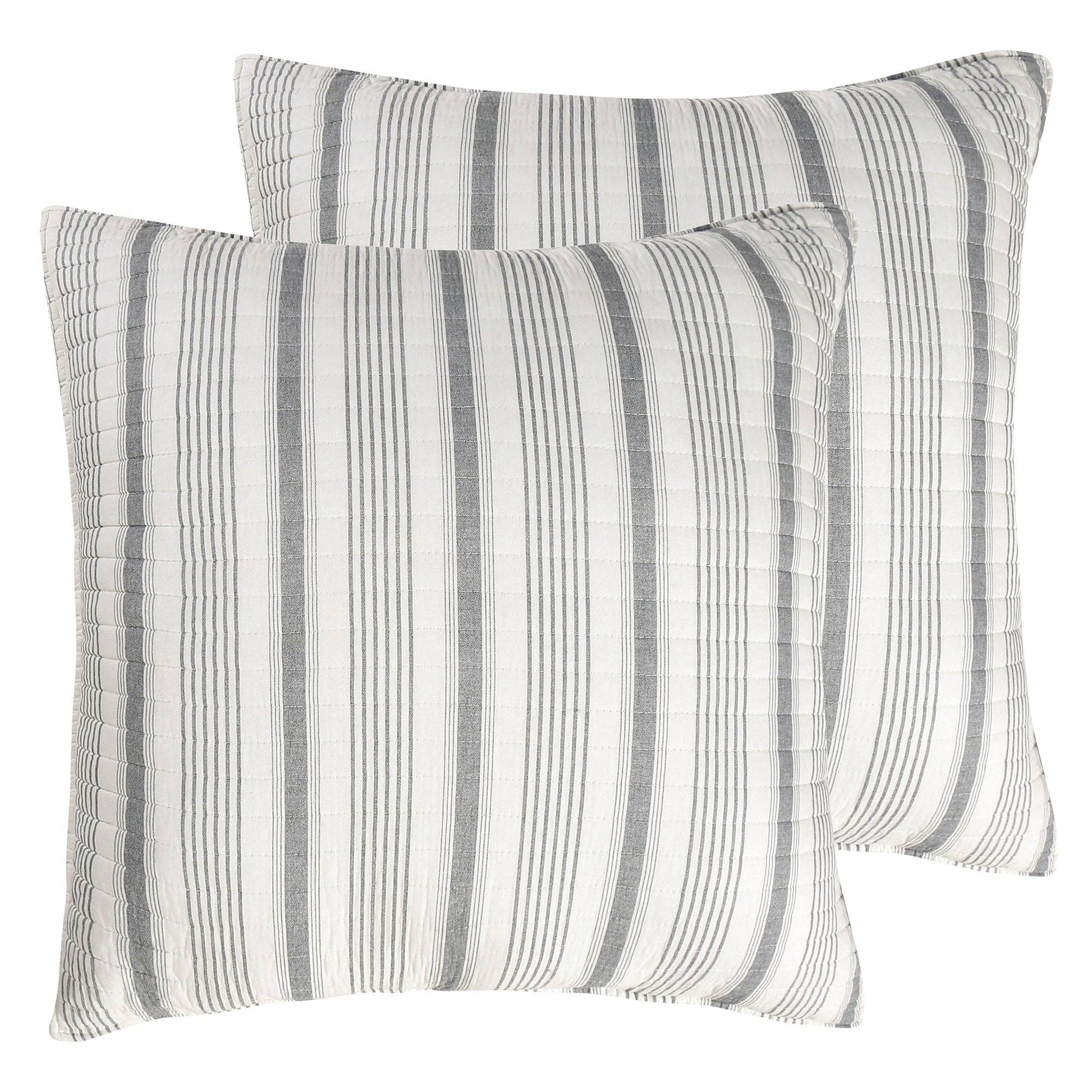 The Camden Euro Shams (Set of 2) - Quilt Back Stripe match perfectly with the Levtex Home Camden bedding collection. These pillow shams are 26x26in. and feature a simple yet sophisticated subtle farmhouse stripe in grey on a cream quilted ground. These shams will complete the look of your bed and also provide an extra layer to lean back on while propped up in bed! This product comes as a set of two, and are unfilled. Enjoy for years to come!