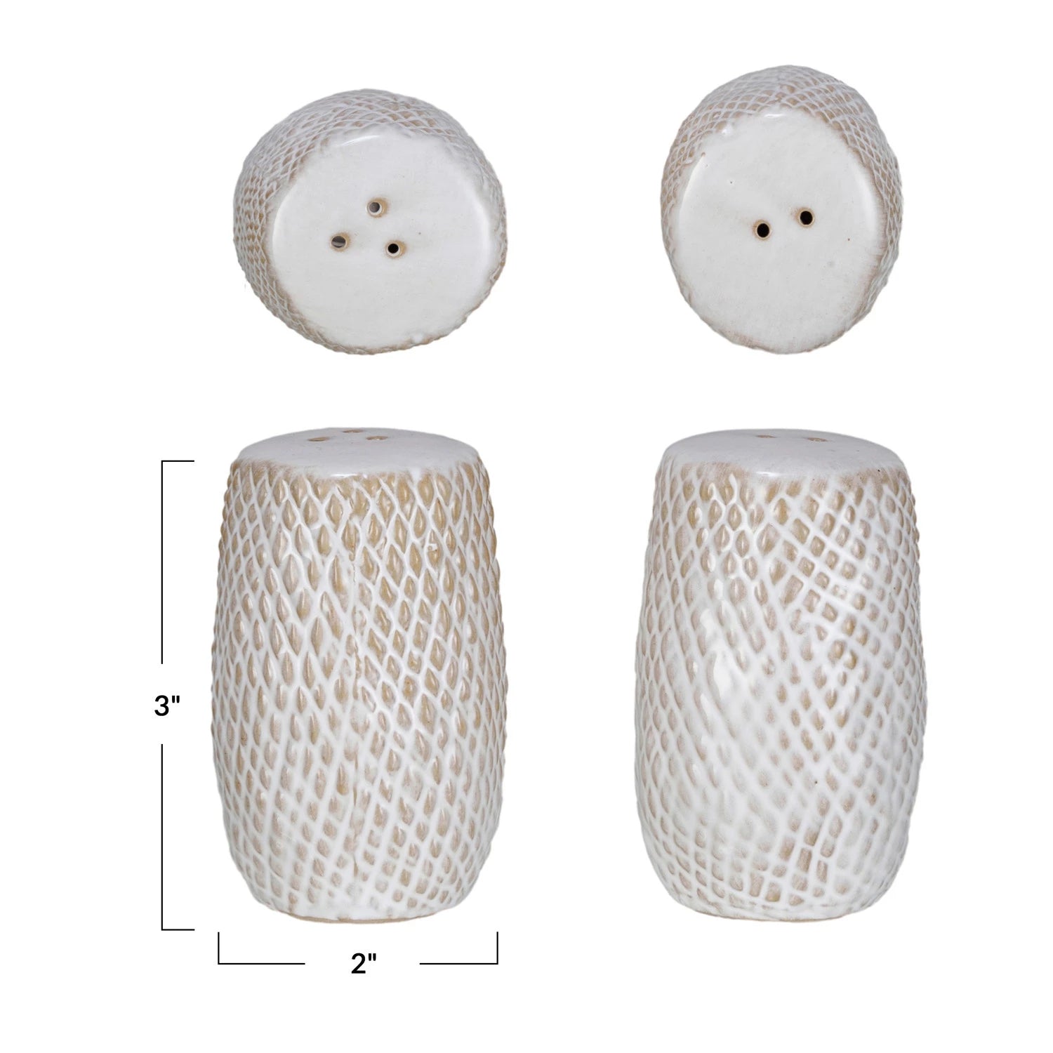 Debossed Stoneware Salt & Pepper Shakers, Set of 2 (Each One Will Vary)