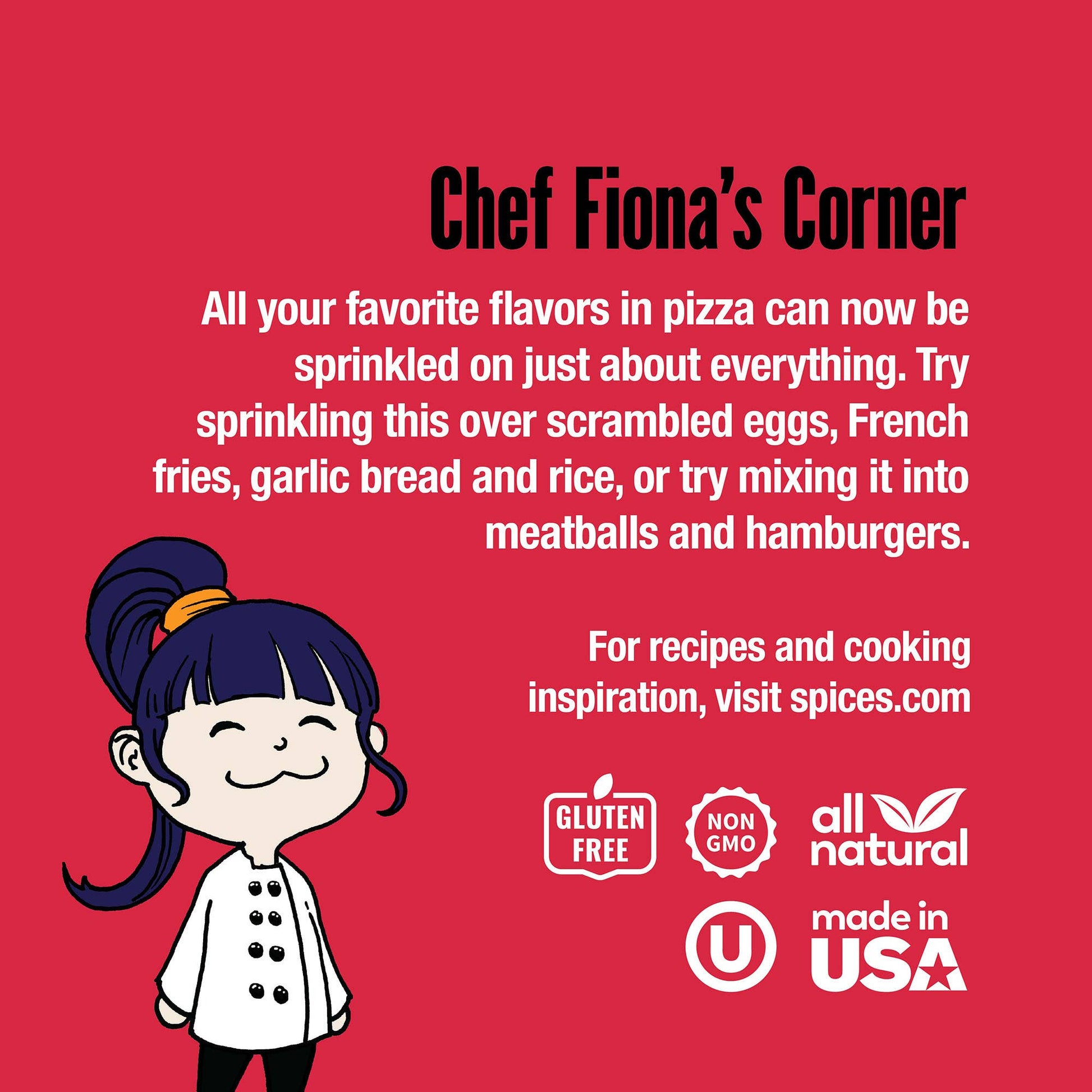 • USES: Try sprinkling over scrambled eggs, avocado toast, French fries, rice or try mixing into meatballs and hamburgers. Use it to season any tomato puree to make a quick and flavorful sauce for pasta or pizza. Add some to your favorite biscuit or cornbread recipe for a flavor-packed twist.