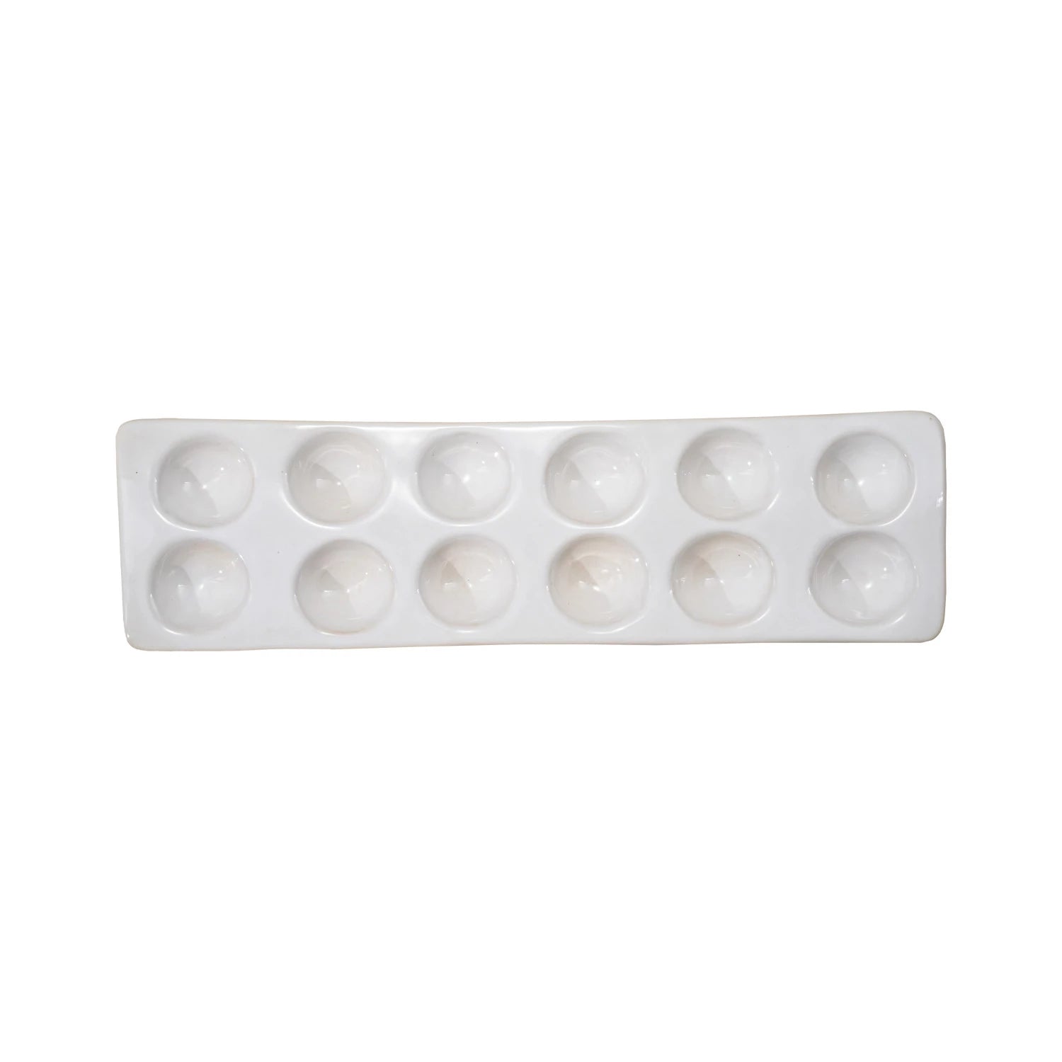 14-1/2"L x 4"W Stoneware Egg Holder, Reactive Glaze, White (Holds 12 Eggs)