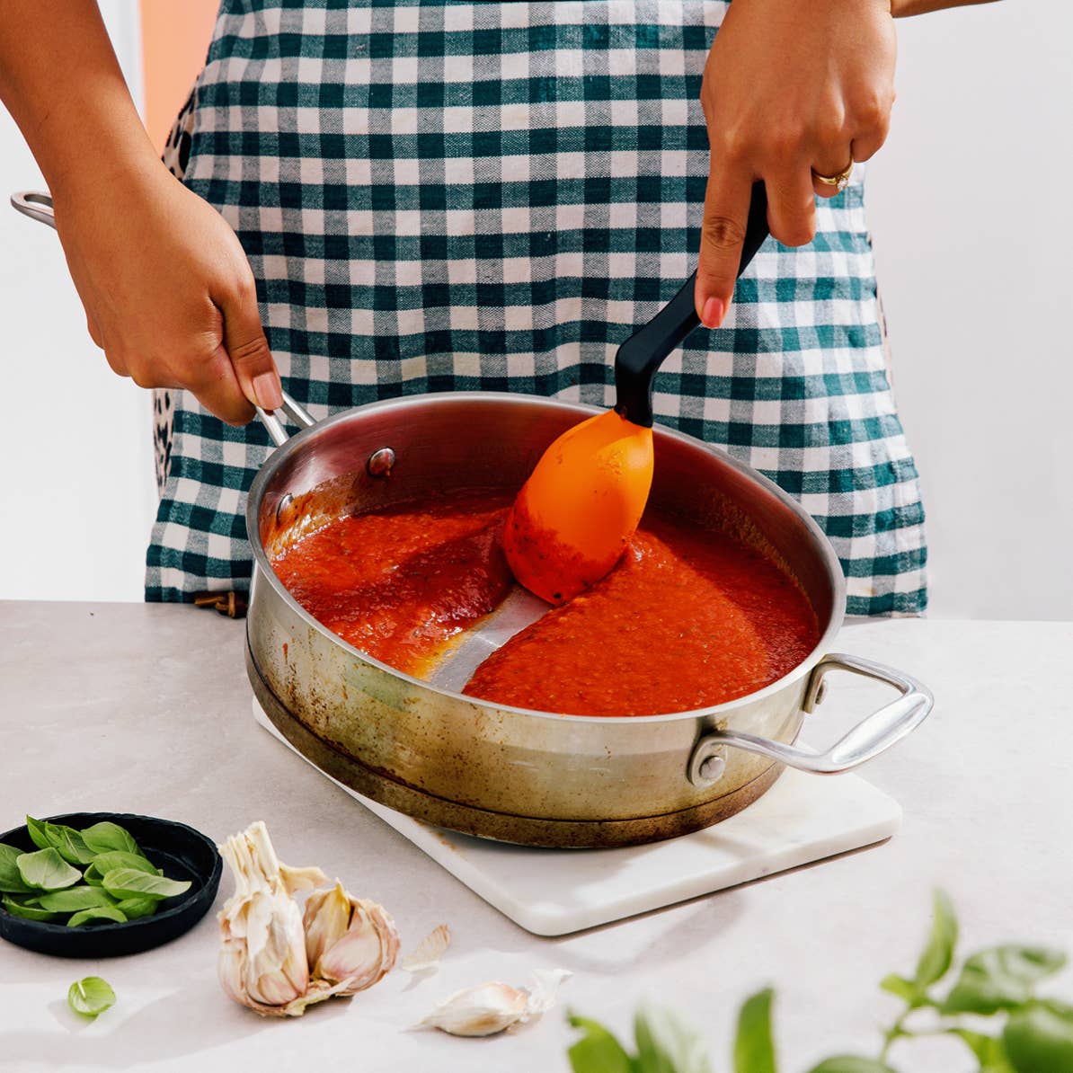 Supoon has a reputation for leaving nothing behind. Its flat silicone scraping tip and flexible squeegee sides scrape out every last piece of food from your pan or bowl.