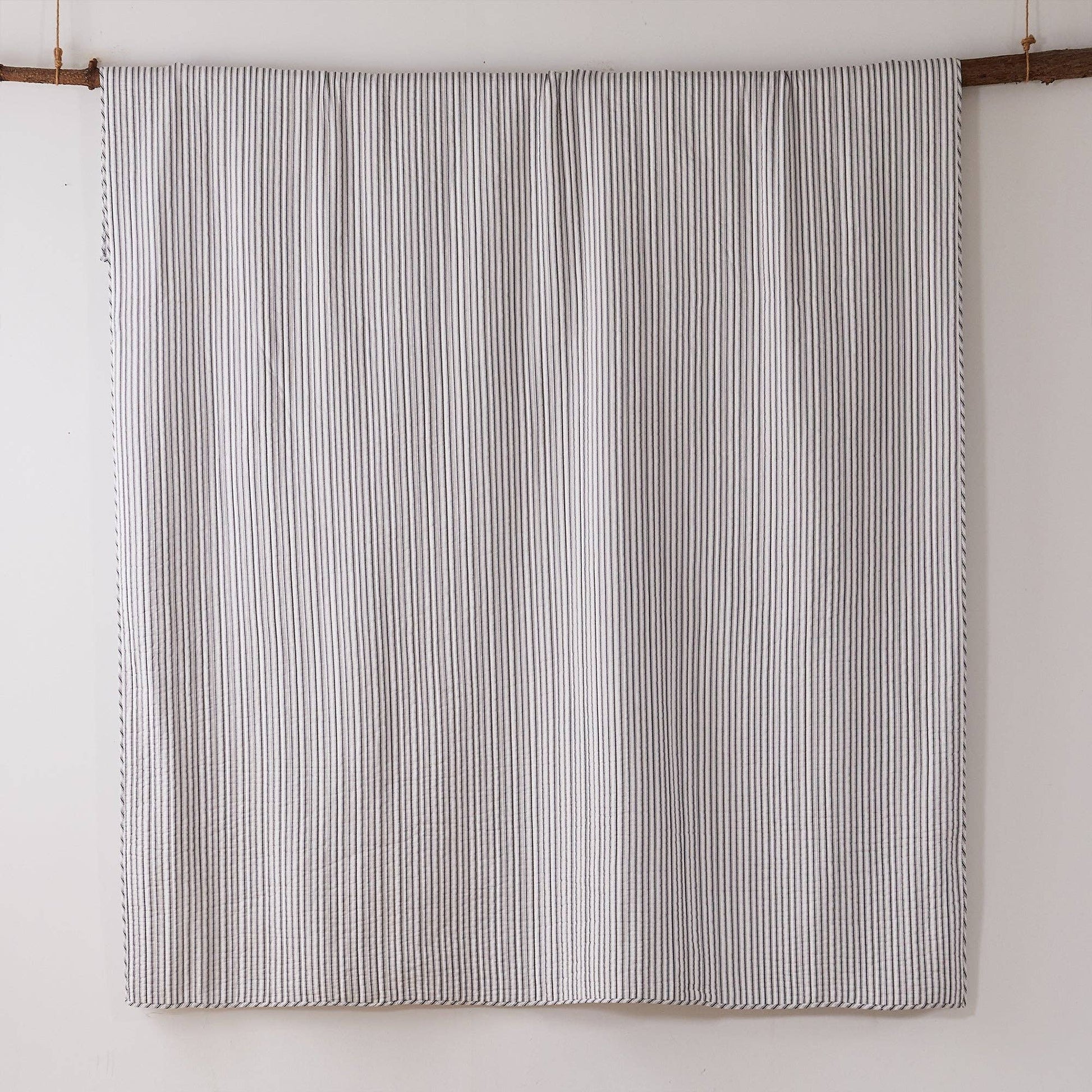 The Tobago Stripe Reversible Quilt Set by Levtex Home is inspired by nautical stripes. This classic stripe design will immediately transform your bedroom. Made with the softest lightweight cotton and filled with a cotton-rich filler (that includes cotton, polyester and other fibers), this reversible quilt features pin stripes on white reversing to the same design on the back. The Quilt Set is machine washable. Enjoy this for years to come!