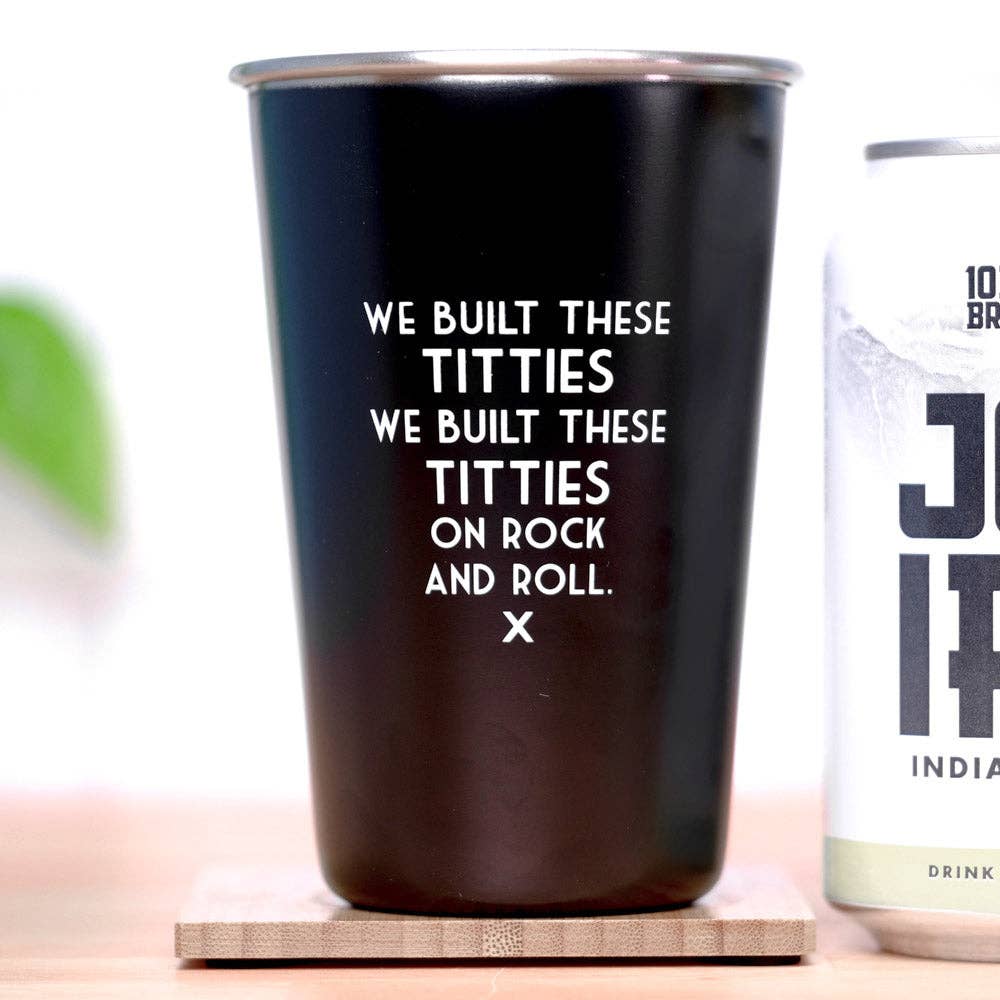"We built these titties, We built these titties on Rock and Roll." ~Starship Glass Dimensions: One Pint (16 oz) Care Instructions: Hand wash recommended Material: Stainless steel