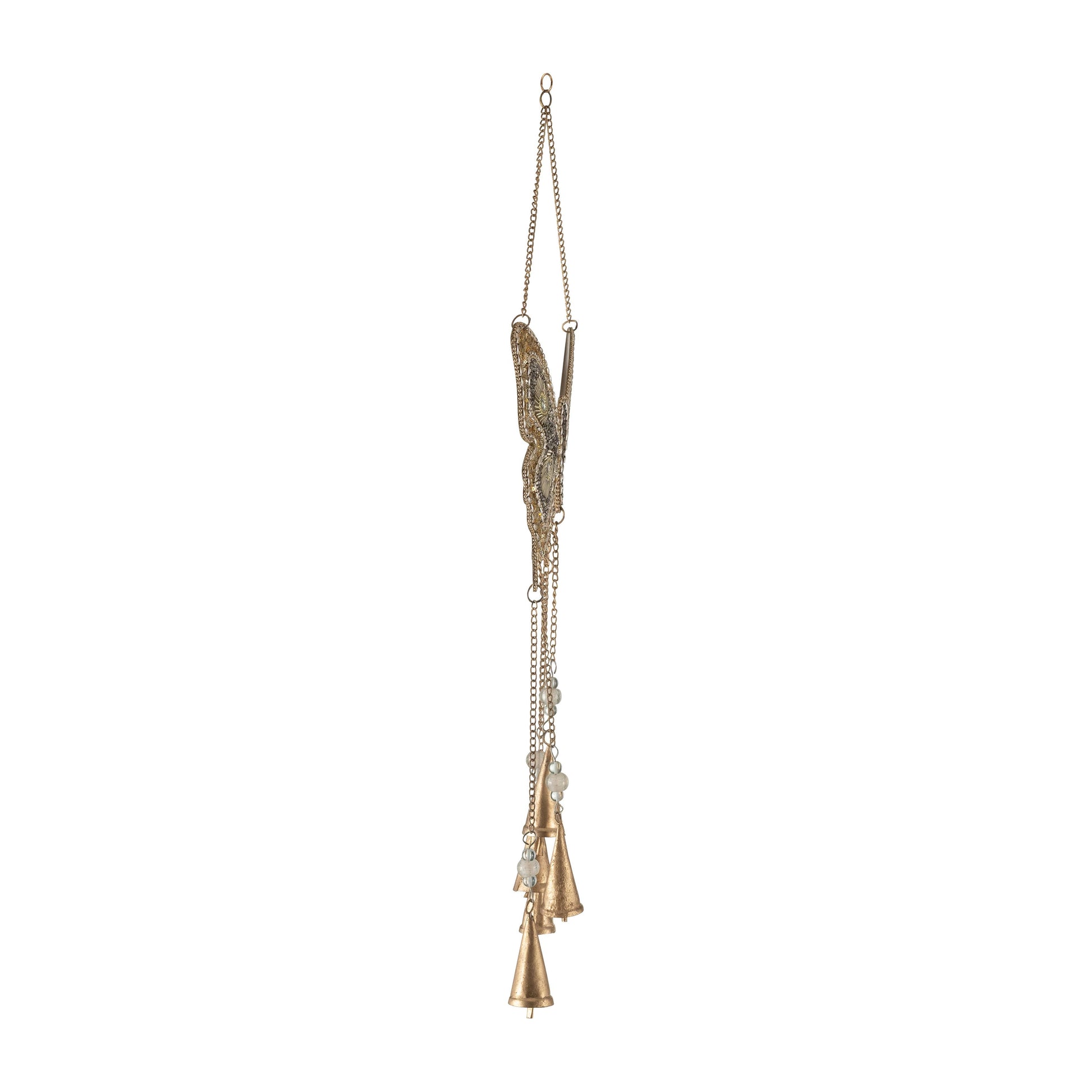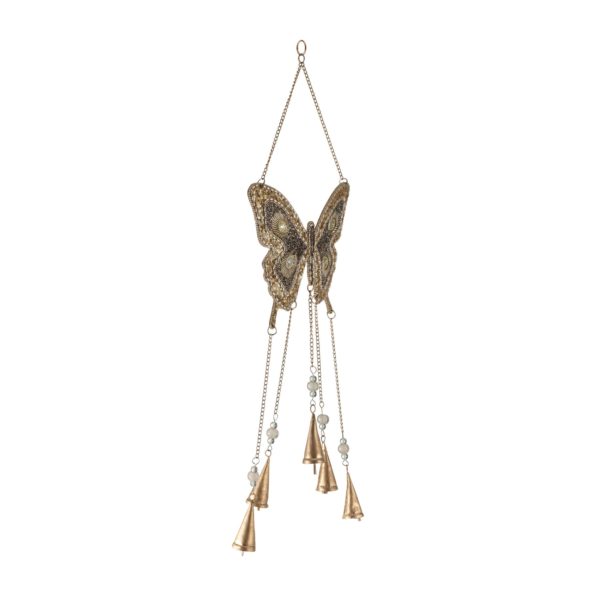 Wind Chime - Gold Metal Beads Mosaic Butterfly, 24 in.